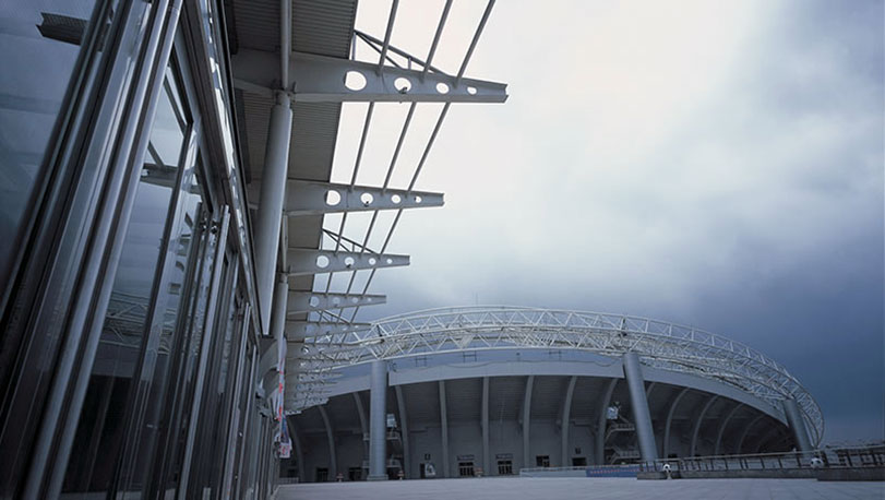 哈爾濱國際會展體育中心容量巨大、功能完善。具備建筑面積51000平方米的比賽用場地,面積為3525平方米的體育館,可容納1.1萬名觀眾,這里可進行冰球、籃球、排球、羽毛球、體操、手球等多種項目的比賽及大型文藝藝術演出。屋面使用了寶鋼熱鍍鋅氟碳彩涂板