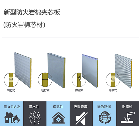 巖棉夾芯板是選用兩層高品質的彩涂涂層鋼板或其他精密壓型的金屬板做面板,輥壓成型