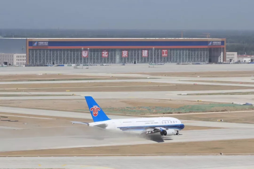 北京大興機(jī)場(chǎng)南航機(jī)庫(kù),總面積3.9萬平米,鋼結(jié)構(gòu)屋架長(zhǎng)404.5米,跨度為世界最大,是北京新機(jī)場(chǎng)南航基地內(nèi)體量最大的單體工程,是亞洲最大的飛機(jī)維修庫(kù)。機(jī)庫(kù)共設(shè)5個(gè)寬體機(jī)機(jī)位和3個(gè)窄體機(jī)機(jī)位,最多可同時(shí)容納包括2架空客A380、3架波音777在內(nèi)的12架飛機(jī)停放維修。南航機(jī)庫(kù)工程的設(shè)計(jì)、采購(gòu)選材、施工建造全過程均體現(xiàn)出中國(guó)智慧、中國(guó)工藝,是100%的“中國(guó)建造”。