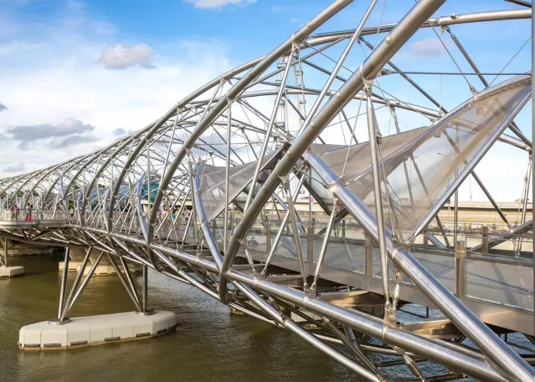 雙螺旋樓梯主要支撐在外圈的索網上,所以螺旋外側做強,為較粗圓鋼管,同時連續的雙螺旋樓梯也提高了索網的穩定性。