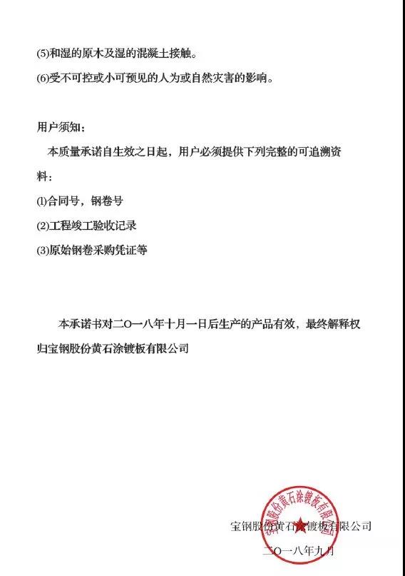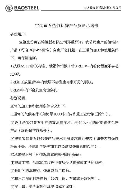 熱鍍鋁鋅20年產品使用承諾書