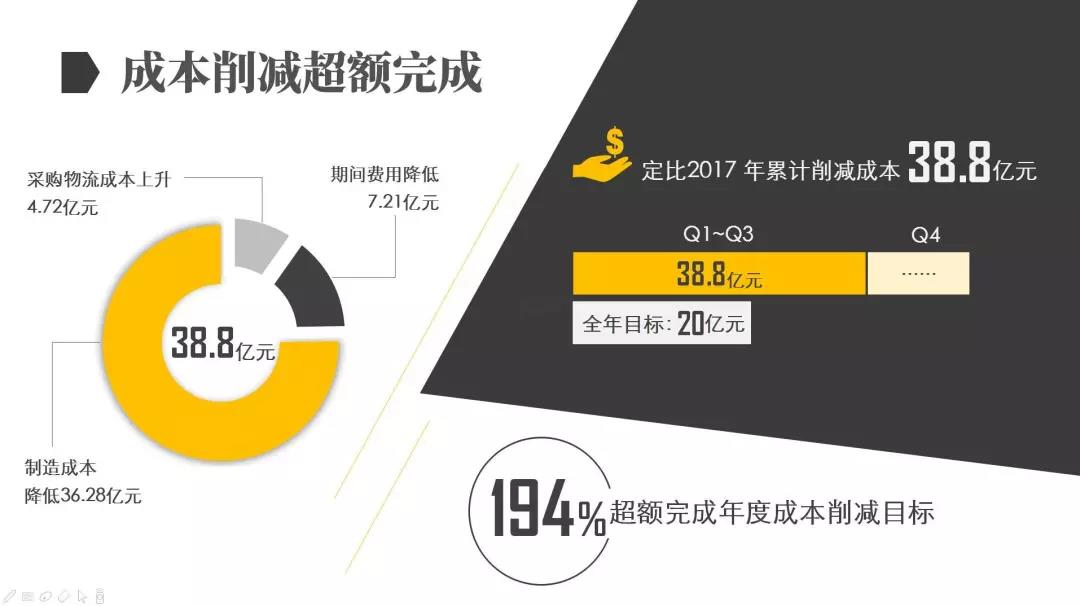 今年前三季度,寶鋼股份累計完成商品坯材銷量3511.6萬噸;累計成本削減38.8億元,超額完成年度目標(biāo);累計實現(xiàn)經(jīng)營活動凈現(xiàn)金流367.5億元,同比增長179.9%;三季度末,資產(chǎn)負(fù)債率降為47.6%。
