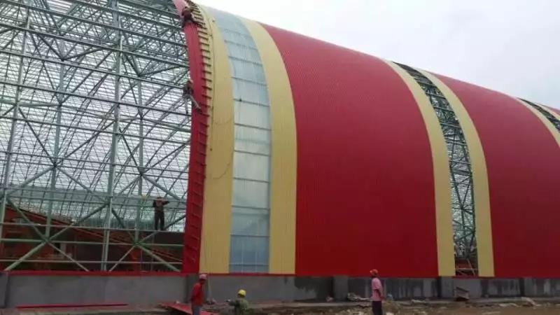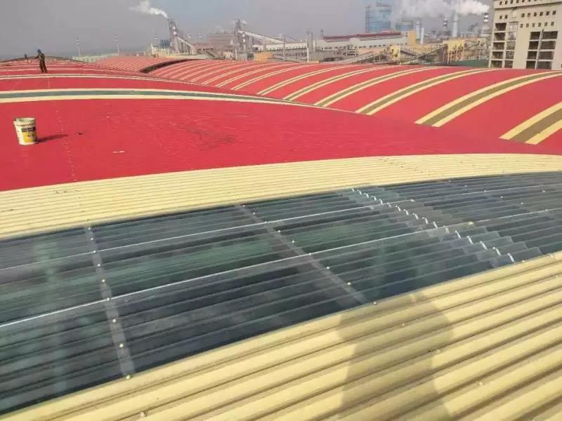 前期使用其他廠家彩涂產(chǎn)品,短時(shí)間內(nèi)多次發(fā)生銹蝕穿孔。后經(jīng)與寶鋼黃石公司聯(lián)系并邀請(qǐng)進(jìn)行現(xiàn)場(chǎng)走訪,發(fā)現(xiàn)此批彩涂產(chǎn)品使用在煤氣發(fā)生爐區(qū)域,車間內(nèi)不僅屬高溫、高濕環(huán)境,還有二氧化硫等還原氣氛,鍋爐排放粉塵顆粒附著腐蝕較大,對(duì)產(chǎn)品耐蝕性提出更高的要求。經(jīng)與業(yè)主溝通,選用鍍鋁鋅基板,并提升背面膜厚及涂料種類(環(huán)氧改為氟碳涂層,背面漆膜≥20um),經(jīng)5年時(shí)間跟蹤,漆膜完整,大大增強(qiáng)了使用壽命,降低更換周期,得到業(yè)主認(rèn)可。使用時(shí)間2013年,共計(jì)使用400噸。