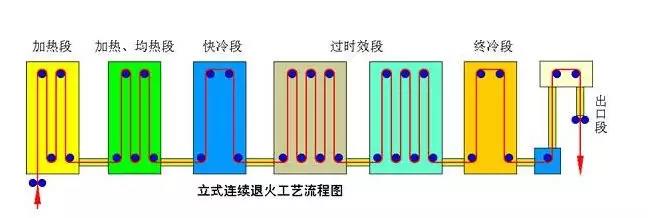 連續(xù)退火工藝呢,就有點(diǎn)像下面條了。帶鋼在退火機(jī)組的爐子里彎彎曲曲纏繞,跟著輥?zhàn)舆\(yùn)轉(zhuǎn)前進(jìn),是把帶鋼展開(kāi)加熱的。機(jī)組的速度控制好了,從帶鋼進(jìn)爐子到出爐子的時(shí)間也就固定下來(lái)了,速度和爐溫決定了火候。