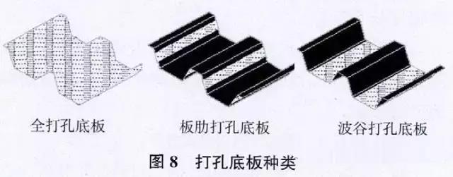 解決辦法:屋面底板穿孔+鋪設(shè)吸聲材料(無(wú)紡吸聲布及玻璃纖維棉),打孔底板種類見(jiàn)圖8。